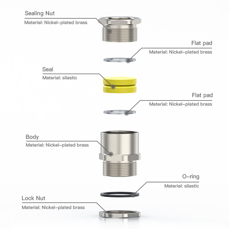 Made from high-quality materials like brass or stainless steel, these glands resist corrosion, pressure, and impact. Their tough structure ensures reliable performance even in harsh industrial conditions.