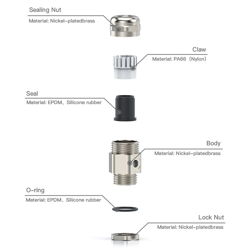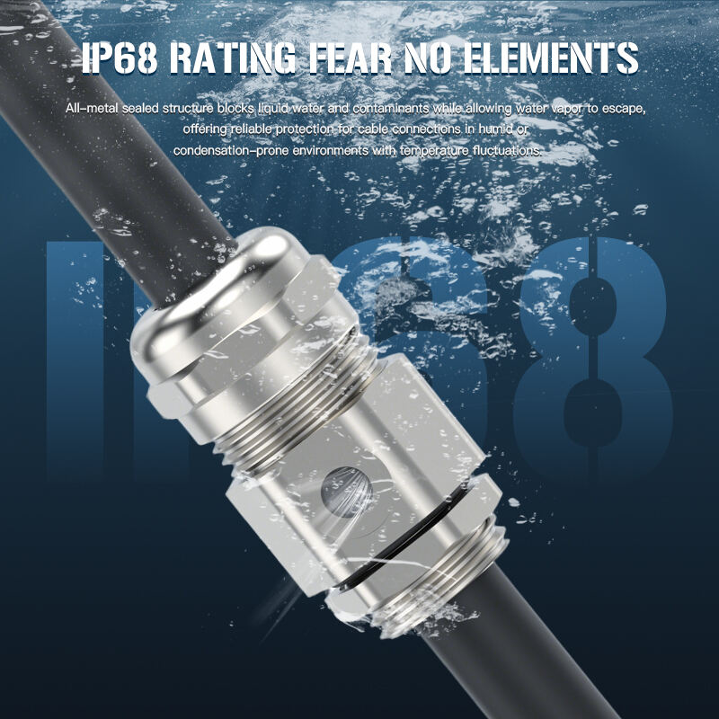 The gland offers IP67–IP68 waterproof and dustproof protection, ensuring long-term reliability even in environments exposed to rapid temperature or pressure fluctuations. Its precise clamping structure provides excellent strain relief and cable stability, maintaining secure connections under vibration and mechanical stress.