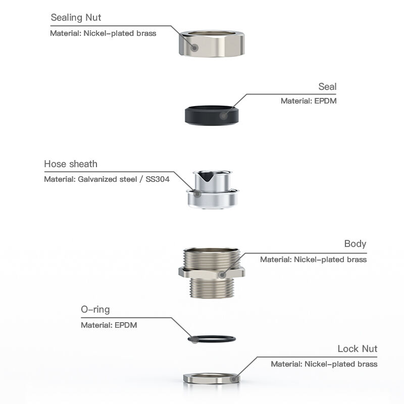 | Fitting Material: | Nickel-plated brass/SS304/SS316L | |||||