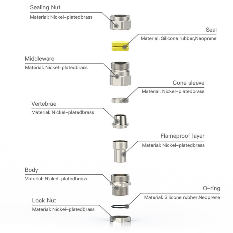 An explosion-proof cable gland is designed to secure and protect electrical cables in hazardous areas. It prevents sparks, flames, or hot gases from escaping equipment, ensuring safety in explosive environments such as oil, gas, and chemical industries.
