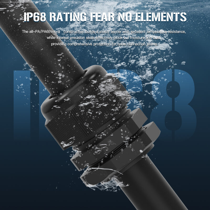 Most nylon cable glands reach IP68 protection levels, offering great resistance to water, dust, and oil. They are ideal for outdoor or humid environments.